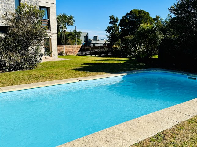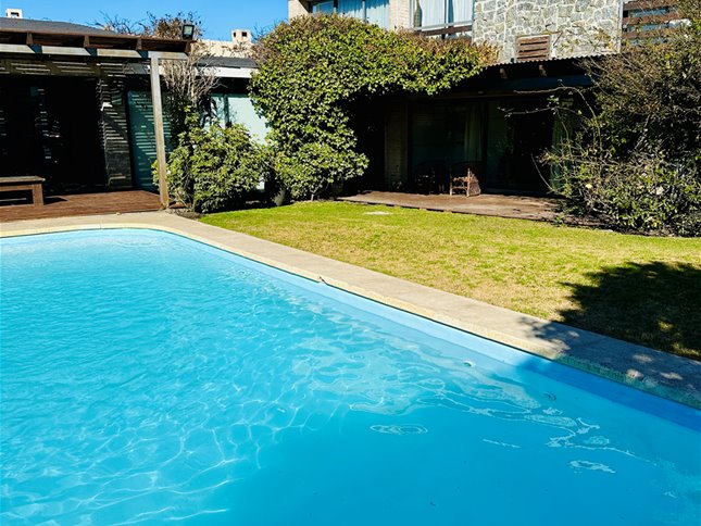 PB: retiro al frente, amplio living comedor con hogar, escritorio definido, baño social, una amplia cocina con isla central que se integra a un estar diario y este se integra a barbacoa cerrada con parrillero, todos los ambientes con salida a una galería de aproximadamente 30 mts. con todo el sol y piscina climatizada. Servicio completo.